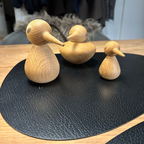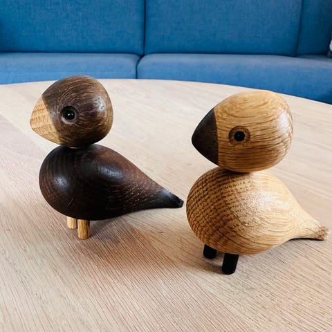 Sjælden dansk design-oplukker fra 60’erne i form af en fugl. Udført i teaktræ og metal med aftageligt hoved – næbbet fungerer som oplukker, og der er proptrækker i kroppen. Dekorativ og praktisk til barvogn eller samler.
