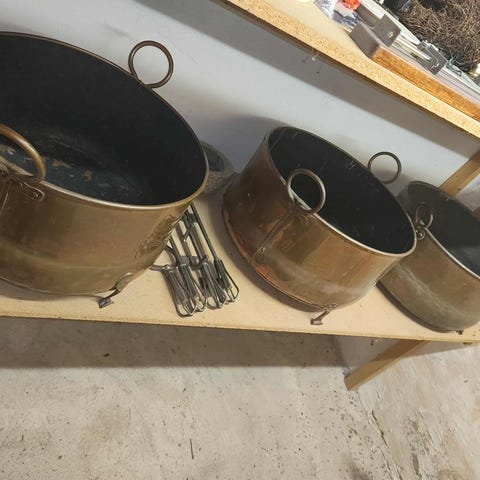 Kobber spand / balje med hank til brande eller noget Ø 39cm H 26 cm.. mulighed for levering