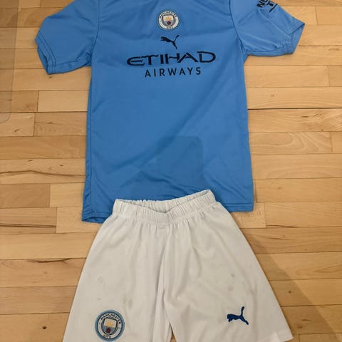 Puma Manchester City fodboldtrøje i blå med hvide detaljer. Fremstillet i let og åndbart materiale, designet til herre. Trøjen har korte ærmer og er velegnet til sport og fritid.