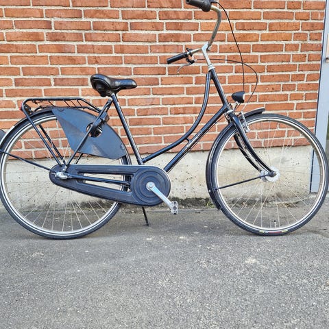 En fin damecykel 52 cm, som kører rigtigt godt, i fin stand, med 3 gear, både håndbremse og fodbremse, lås, gode gode dæk m.m