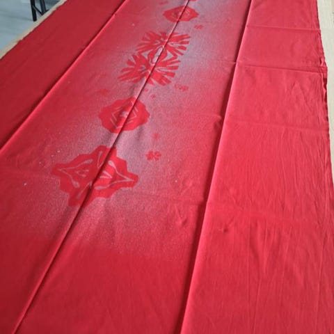Rustrød batikdug Str 123x184 cm. Aldrig brugt.
