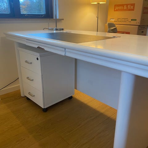 Fint og stort skrivebord med en skuffe på hver side.