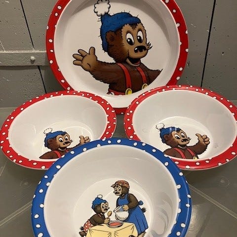Børneservice, Rasmus Klump bestik, Nordahl Andersen, Ligger inde med dette Rasmus Klump bestik.