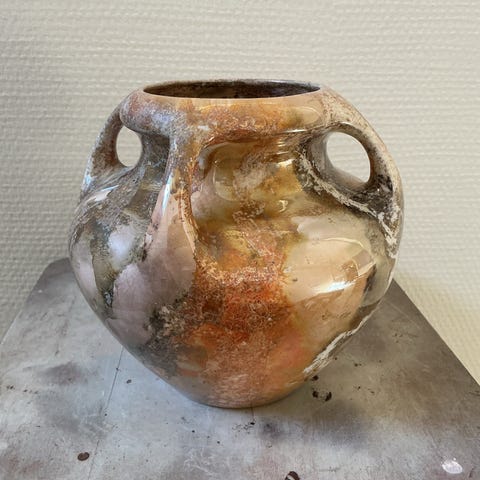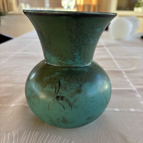 Vase af Gunvor Olin-Grönquist for Arabia 16 cm høj, hel og fin stand, glasur er mere gul/grøn i virkeligheden.