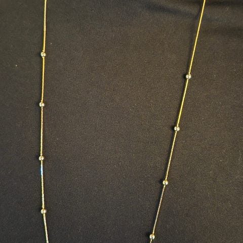 Sælger denne super anvendelige og smukt forgyldte 80 cm lange og lidt grovere bijouterihalskæde med små forgyldte kugler og terninger.