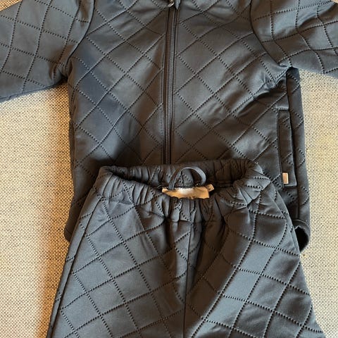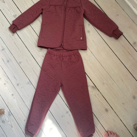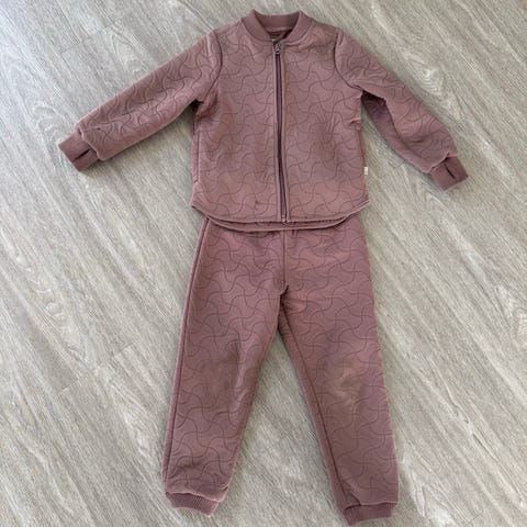 Gammelrosa Wheat termosæt i str. 110/5 år med lidt pletter på det ene bukseben fra leg og fnuller forneden fra støvler.