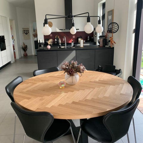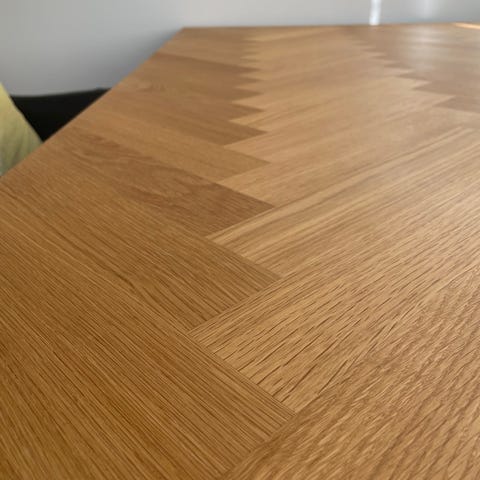Med en slibning og en oliering har du er helt nyt sildebensspisebord.