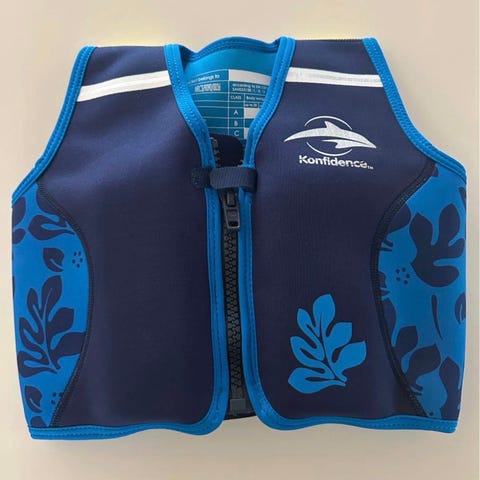 Konfidence Original Jacket svømmevest til børn op til 25 kg. Vesten er lavet af neopren med blomsterprint. Den er designet til at give opdrift og sikkerhed ved vandsport og svømning for børn.