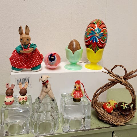 Andre samleobjekter, Træfigur . Hare . Trææg, Retro påskepynt . Påskeæg . Kylling . Lot retro påskepynt 2 gl. harer i træ , træ æg , træ fugl og kylling. Samlet kr 30,- se flere fotos og mine andre retro vintage annoncer og samlerobjekter og evt mængde rabatter på de ting jeg kan. Sender gerne ved min.køb på 50,-