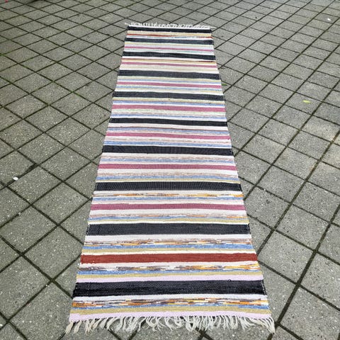 Håndvævet Svensk kludetæppe 79 x 236 cm