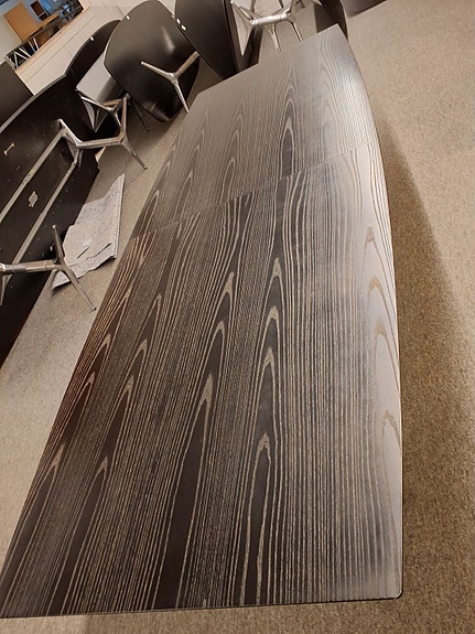 1031 Bordet fra Danflex har en glat overflade med en buet front og metalben med styring fra Magnetic. Pladen er med lys træoverflade. Vi har mange af samme slags ,Afhentes i:,Røde Kors Hjallerup (807),Bemærk at mail, chat og beskeder ikke besvares, og varen skal købes på knappen "Gå til varen"