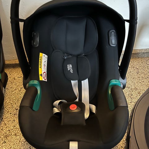 Super god babyautostol med isofix base. Dvs. at basen monteres i bilens isofix, og så kan sædet nemt klikkes ud og ind, når man skal have baby med ind og ud af bilen, uden at selen skal bruges.