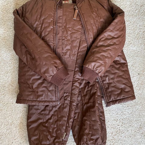 Jakken er næsten ubrugt, bukserne har lidt slid og små huller på det ekstra lag stof på knæene.