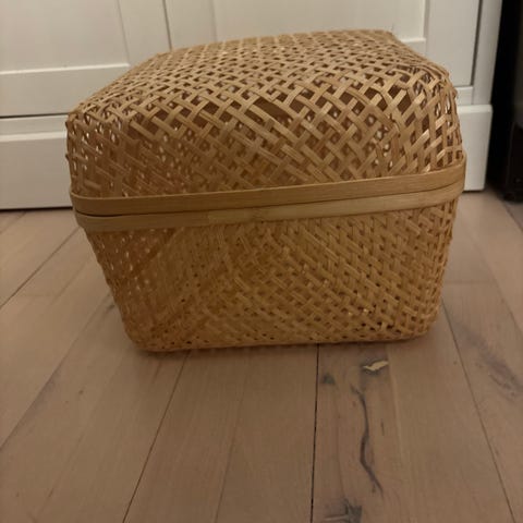 H&M Home kurv med låg lavet af naturfarvet flet. Stadig med prismærke på. Brugt meget lidt og derfor stadig i meget god stand.