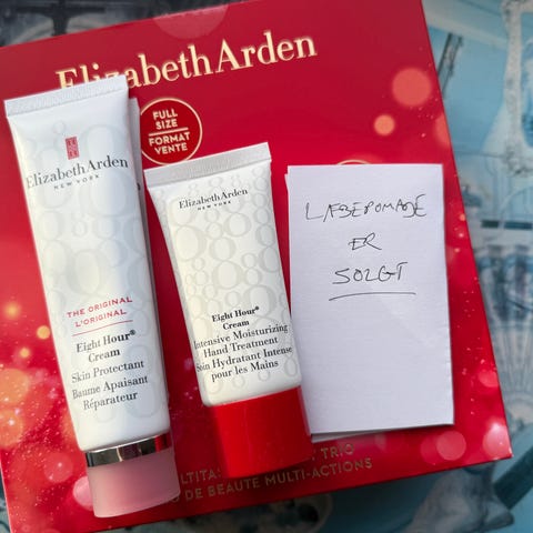 Samlet i den luksuriøse taske af læder med lynlås der er præget med Elizabeth Arden logoet på forsiden.