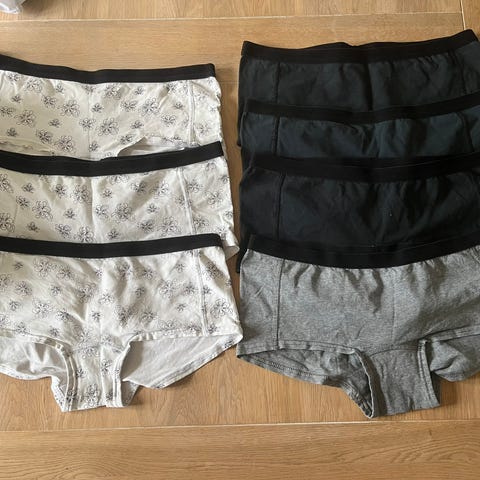2 stk hipsters i bambus/viskose. De har aldrig været brugt, kun pakket ud. De er små i størrelsen og vil ikke sige de passer en L.