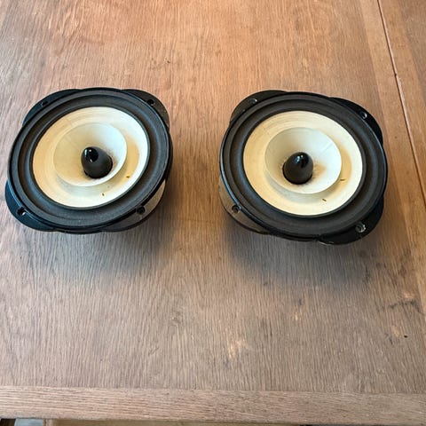 Højttalerne spiller guddommeligt, men den ene membran skal skiftes. Nyværdi +20.000 kr.