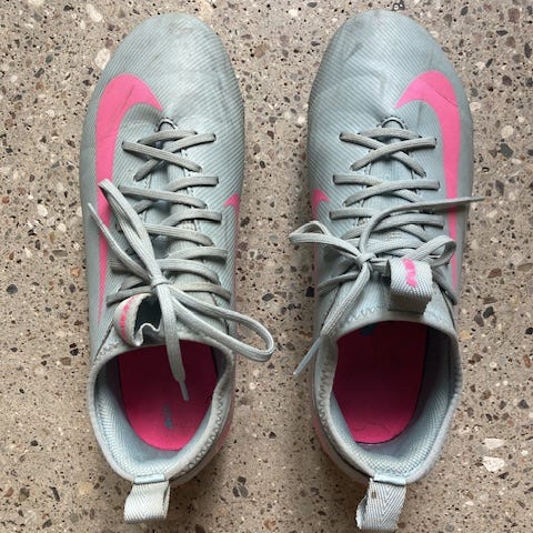 Nike Tiempo Jr. fodboldstøvler i blå farve, størrelse 33. Støvlerne har en gummisål med knopper, som giver greb på græsunderlag. Designet til børn og lavet i syntetiske materialer.