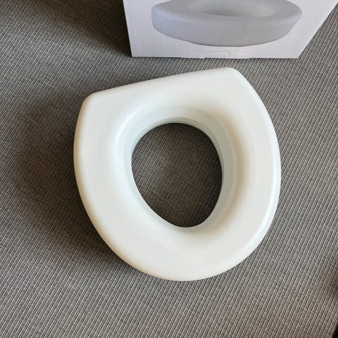 Toiletsædeforhøjer i fin stand, mellem 5/8cm høj, men at sætte på og tage af, kan bære op til 200 kg. Sælges afhentet her