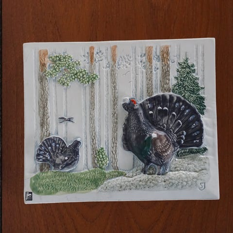 Fin keramisk relief / vægplade / vægdekoration fra Jie Gantofta Sweden. Motivet er rådyr/buk i spring på hvid uglaseret baggrund. Obs. den har nogle misfarvninger.