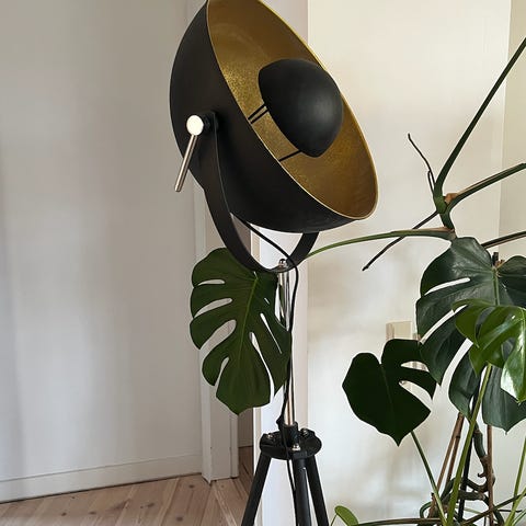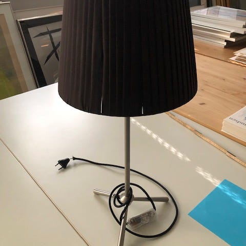 sort lampeskærm - metal = stål 163 cm høj - bordlampe samme fabrikat kr 750 - gulvlampe 1250 - sælges for Lions Club Hellerup