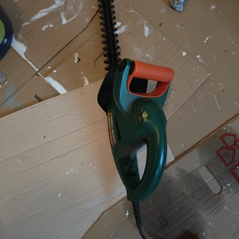 Black & Decker GT5050L hækkeklipper med 50 cm skærelængde, 18V batteridrevet motor. Farve: rød. Leveres med oplader. Velegnet til beskæring af hække og buske, skal nok have nyt batteri.