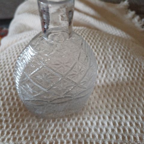 Buttet vase ophav ukendt men ligner lidt Holmegård, den er hel og fin og uden skader.