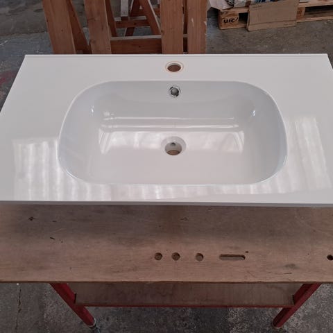 Tvålen 2147 vask i hvid keramik. Mål og specifikationer fremgår af produktets mærkat. Vasken har et enkelt design med et enkelt hul til blandingsbatteri og overløb. Egnet til badeværelser.