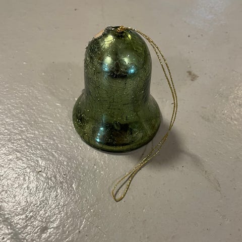 Håndmalet og mundblæst klokke og julekugle. Samlet pris kr. 90,-