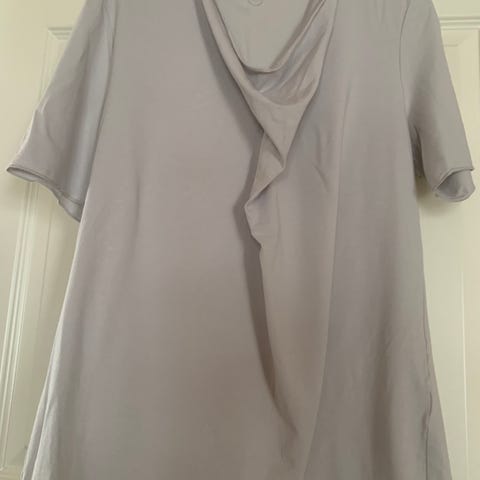 Meleret stof i sort / brun. Et par småbitte huller i stoffet, ses ikke. Rund bred halsudskæring.