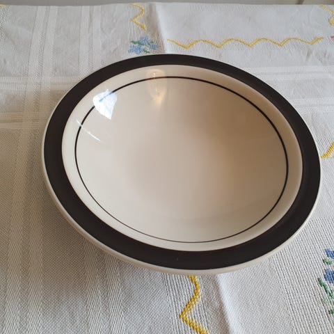 Retro-stel fra engelske Doverstone Staffordshire. Fire dybe tallerkener af mærket “Heather”. Stellet kan maskes i maskine. Prisen er for dem alle.