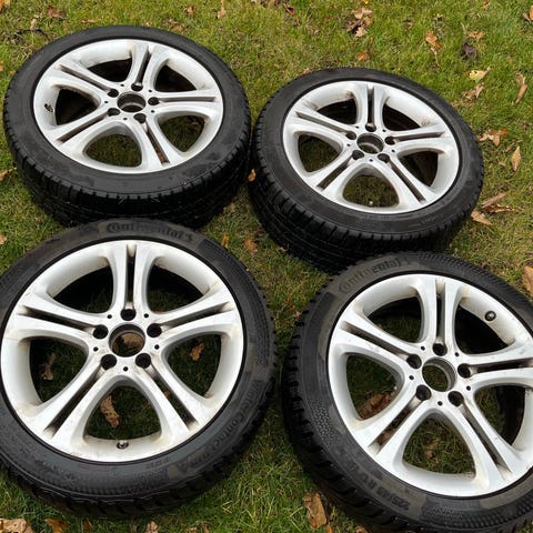 Vinter Alufælge med dimensionerne 225/45 R17. Dækkene er vinterdæk . Fælgene er designet til at passe til Mercedes-Benz køretøjer. ca. 80% gummi