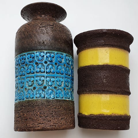Keramik vaser, skål, kop, skål, brevpresser, figur dreng med fisk