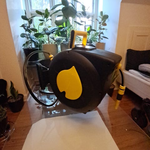 En god Gardena slangeopruller med slange
