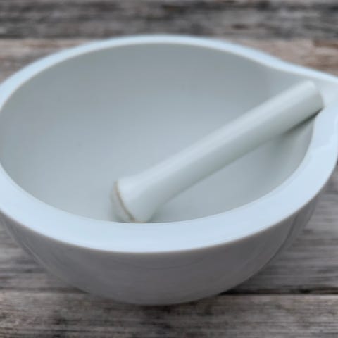 Flot, tung morter. Mener det er Eva Solo men det fremgår ikke. Glaseret uden på, mat neden i. Måler 15,5 cm i diameter