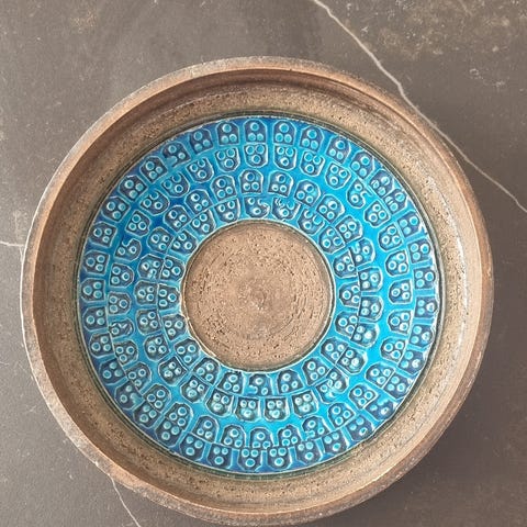 Bitossi, Rimini Blu, Aldo Londi, vintage keramik, retro fad, italiensk design, midcentury, blå glasur, turkis, dansk retro hjem, samlerobjekt, designklassiker, vintage interiør, italiensk keramik, retro pynt