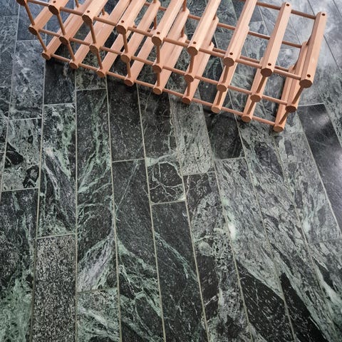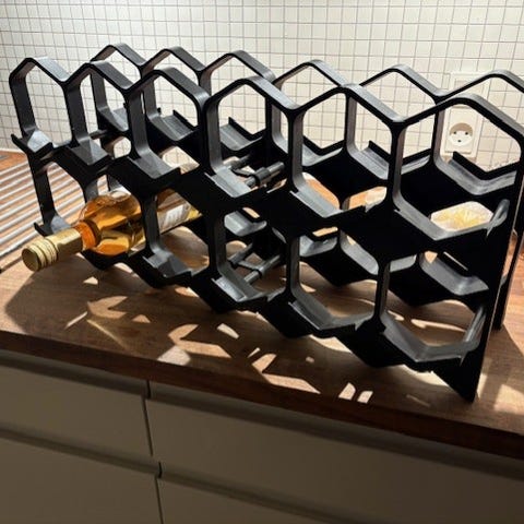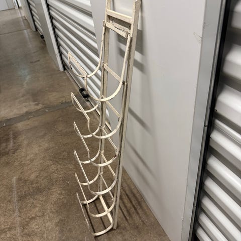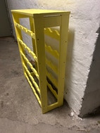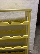 Vinreolen er lavet af træ, og jeg har selv malet den, og den kan snildt males en anden farve.