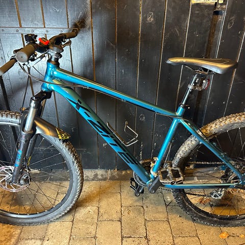 Sælger min mountainbike fra SCO, da jeg ikke længere får den brugt. Den har stået et stykke tid, men kører stadig fint. Den er 21 tommer og forgaflen har fjeder-suspension, så den er behagelig at køre på både i byen og på små ture i skoven.