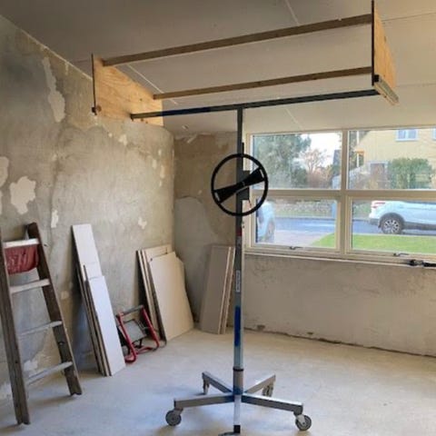 Gipspladehejs model 6656, 3 hjul med bremser på trefod, hejseværk med bremser max. pladestørrelse 122x488 cm,