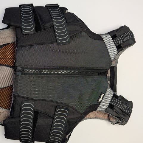 Standen er god. Velcro fungerer godt. Bærer dog præg af at have ligget i en stald, derfor må lidt skidt/pletter/støv forventes.