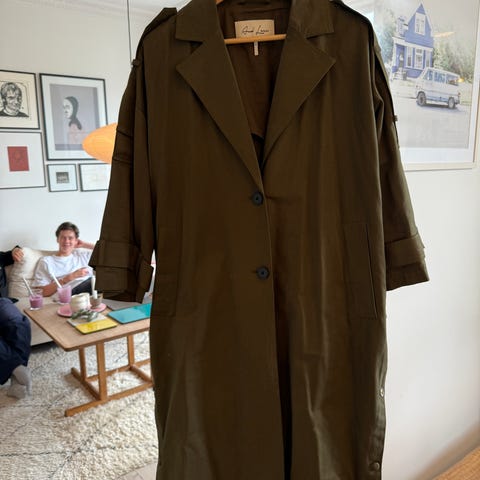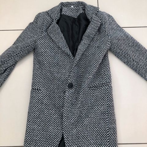 Brune tern på cremefarvet bund. 90 % Polyester 10% laine. Gode dybe lommer. Ingen inderlommen. Flotte detaljer på ærmerne.