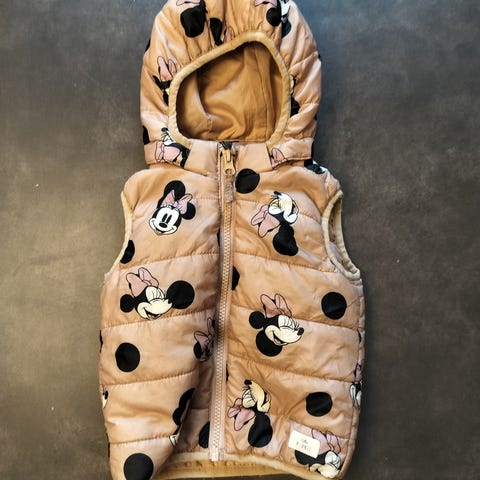 Vest med Minnie mouse sælges . Den er brugt og har lidt brugsspor . Den er fra H&M og den er i str 104 . Den kan sagtens bruges stadig min datter kan bare ikke passe den mere . Den sælges for 30kr