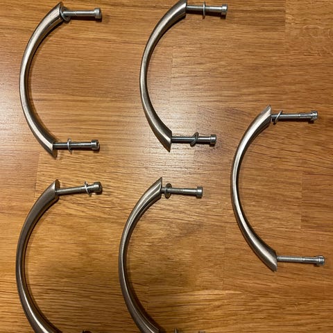 8 ens metalgreb bredde 16cm, mellem huller 14cm. Dybde 4cm.
