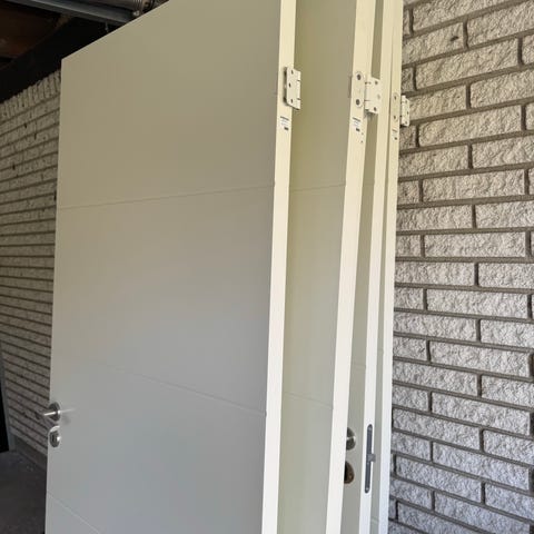 indvendig BD 30 døre. 4 stk. venstre og 4 stk. højre hængt. B 98,6 x H 207,9 uden bundstykke men med stål skinne. karm dybde er 200mm, men kan skæres ned. pris pr stk. kr. 4.000,00