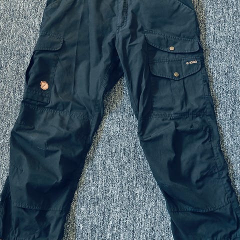Fjallraven G-1000 hr.str 54 længden 104cm. Meget velholdt, dog i venstre ben foran lige ved neden Af Bukserne ved kanten har bitte rift det kan ikke ses når man har bukser på, sender via postnord eller afhentes