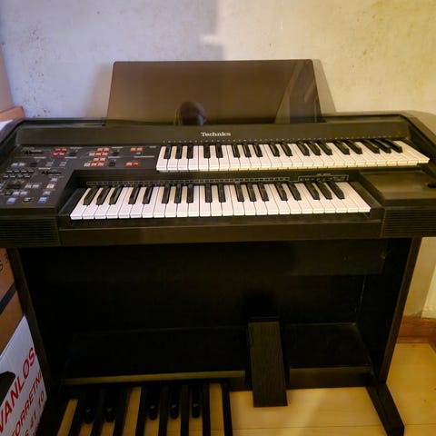 Elektronisk orgel med dobbelte klaviaturer og pedaler
