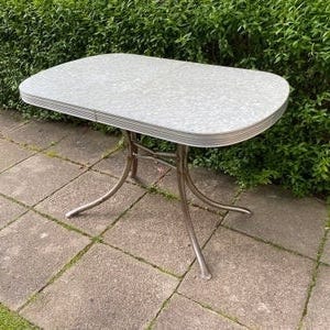 Jolina Diner spisebord sort plade og 4 stole rød/hvid og krom.