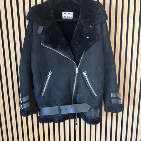 Den klassiske acne studio “velocite” læderjakke i en ruskind. Der giver den en blødere look og pasform.