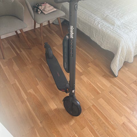 Ninebot ES2 el-løbehjul med digital skærm, LED-lys foran og bagpå, 20 km/t maksimal hastighed, og foldbart design. Farve: sort. Materiale: metal og plastik. Egnet til voksne og unge. Velegnet til bytransport og kortere pendling Jeg har brugt det for næsten 1 år der er problemer den slukker sig selv vis det fx bliver koldt udenfor eller måske du vejer for meget. Hjulene skal punkteres