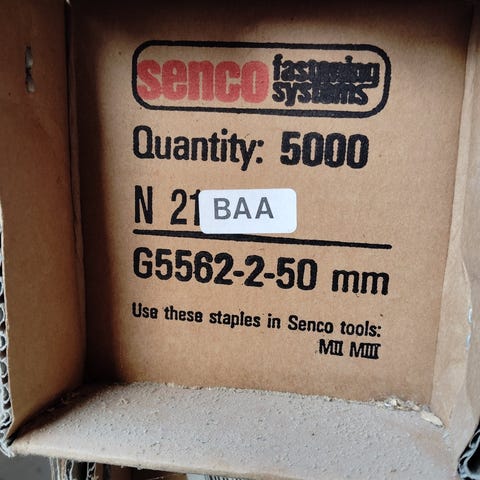 Fem uåbnede kasser Senco hæfteklammer sælges – sælges også enkeltvis. Perfekte til professionelle og gør-det-selv projekter, hvor der kræves pålidelige klammer til lufttakker, stiftere og sømpistoler.